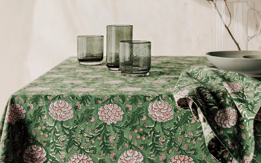Peony -Block Printed Table Cloth