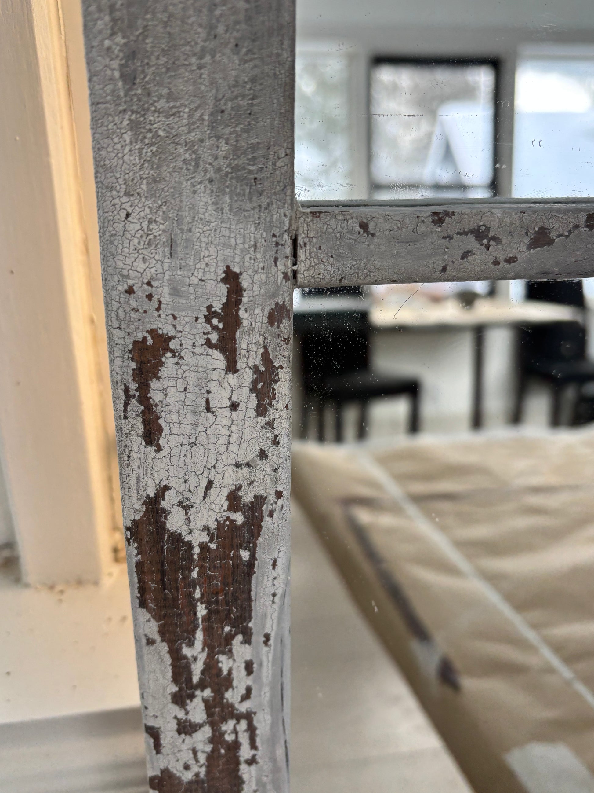 Bring timeless character and warmth to your space with this authentic vintage inspired window mirror. Featuring a classic 9-pane grid and original, beautifully aged paint, this piece adds instant architectural interest without feeling heavy or fussy.